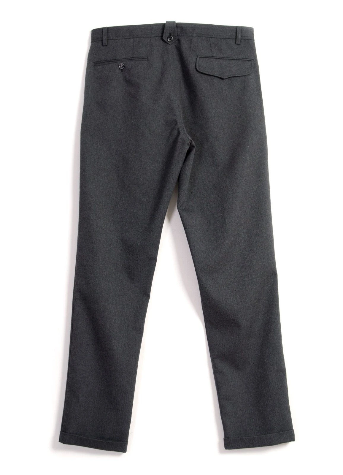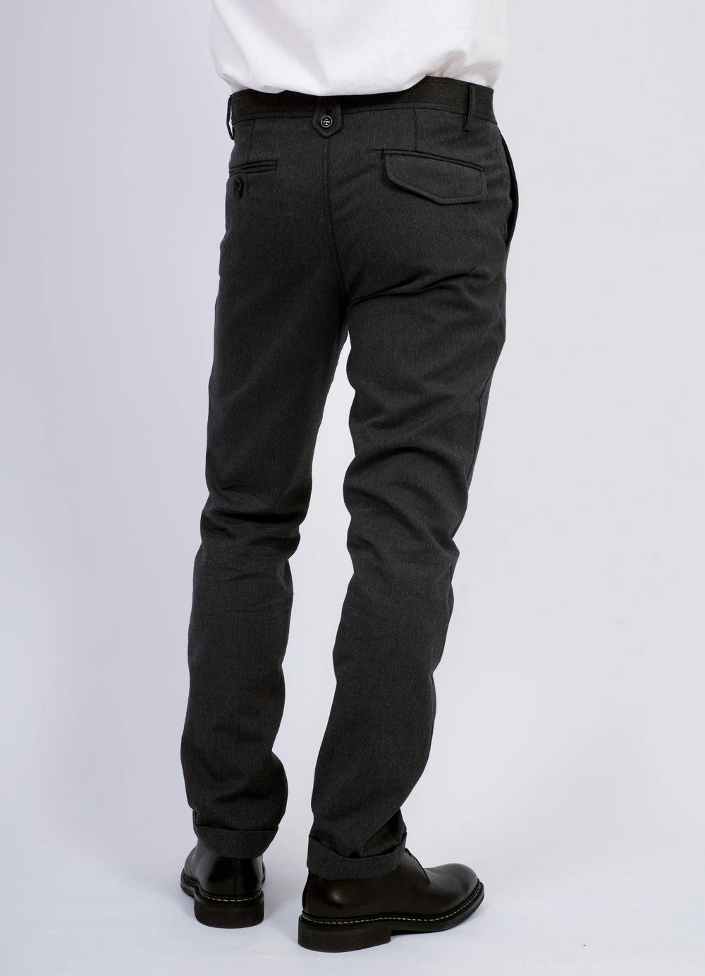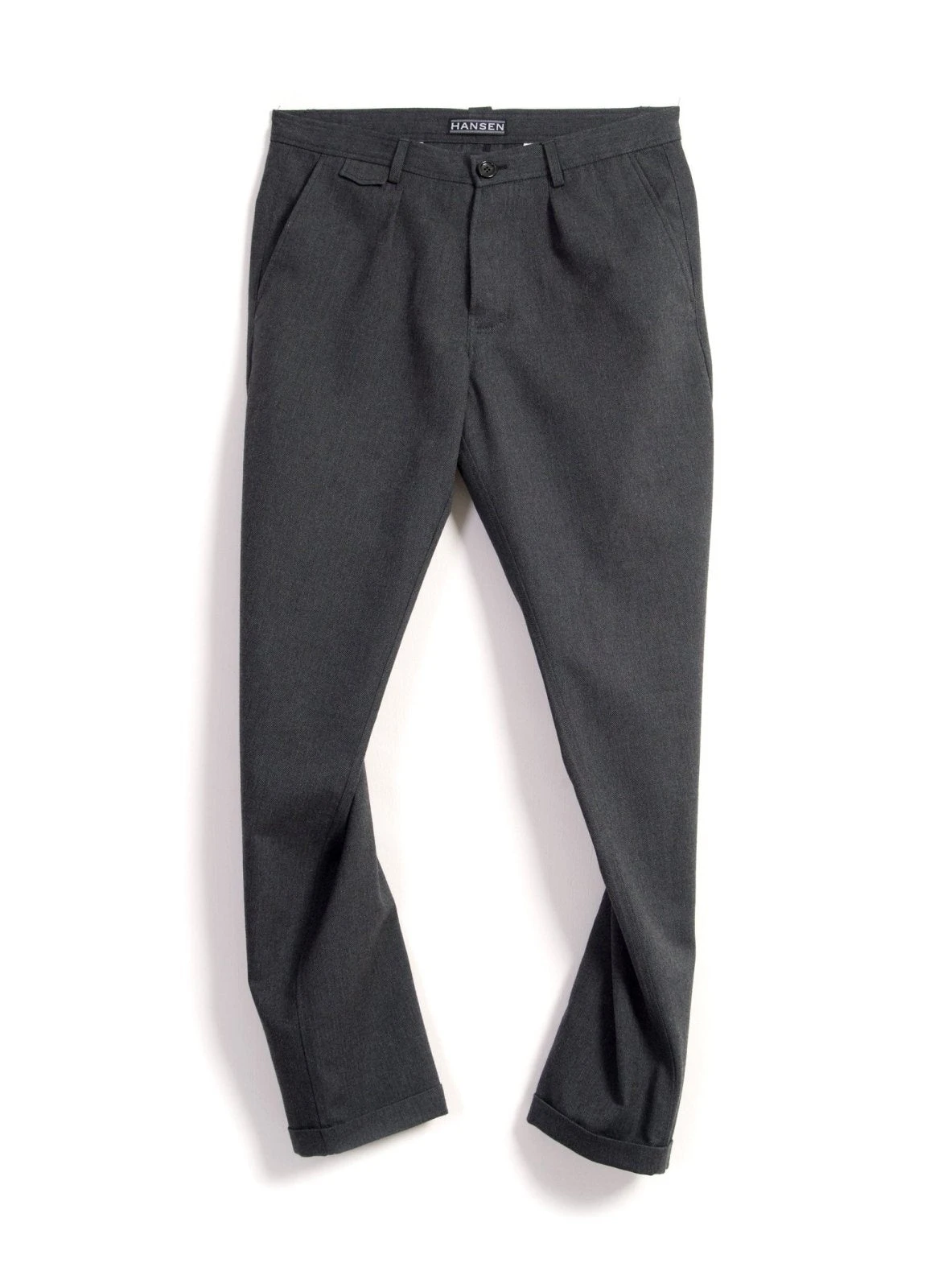 Frank is a mash-up of classic men’s suit trousers and chinos. Suiting references include pleats on the front, cuffed leg and lined waistband, while the work wear-inspired double top-stitching makes the trousers less formal.