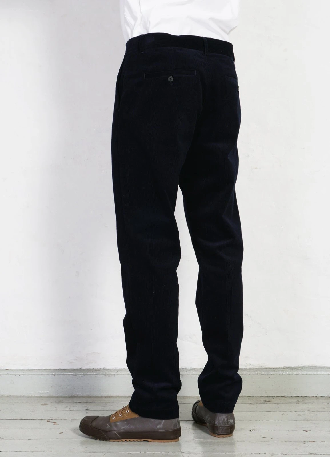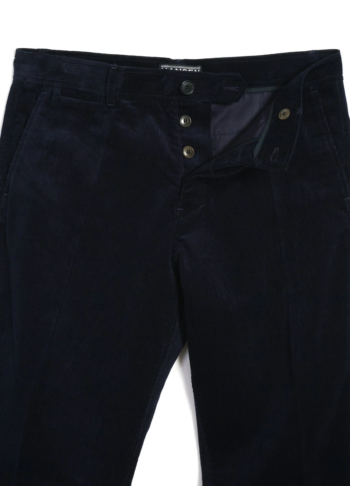 This navy blue Italian fine striped cotton corduroy makes a light weight all year round classic suit.
