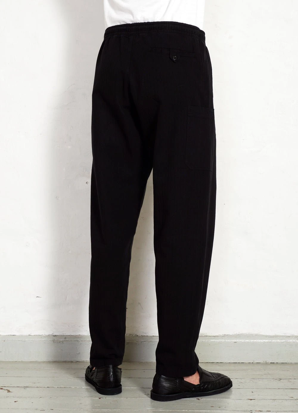 JACK is a casual draw-string loose fitted sporty pant with an elastic waist, side seam pocket and a patch-on flap back and side pocket.