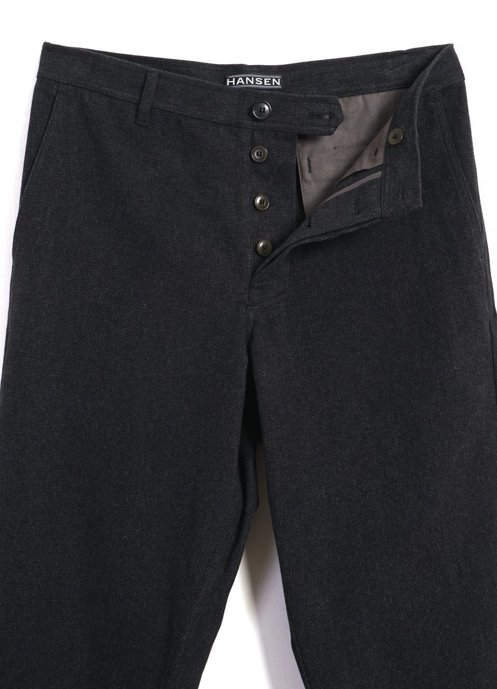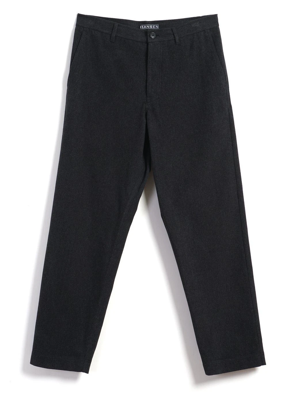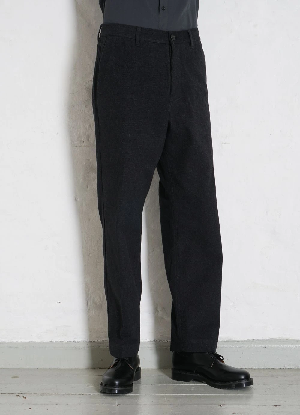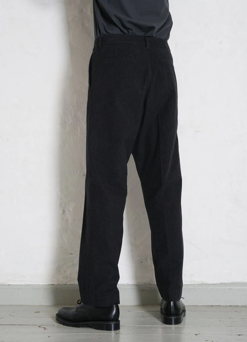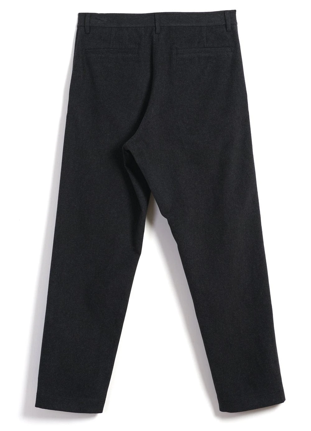 KEN is a wide cut trouser with a fitted top block and a relaxed silhouette. It has two paspel back pockets, slanted front pockets and topstitching throughout. It can be worn separately or as part of our well-known casual looking three-piece suits.