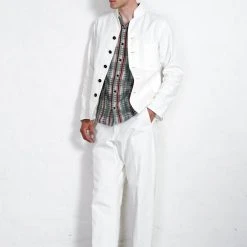 LENNY is a new-comer for the SS20 collection. It is inspired by traditional work wear and comes with all over top stitching. It is garment dyed / washed and a loose fit. The sturdy Italian cotton twill has been washed and garment dyed and with that it has a soft hand feel.