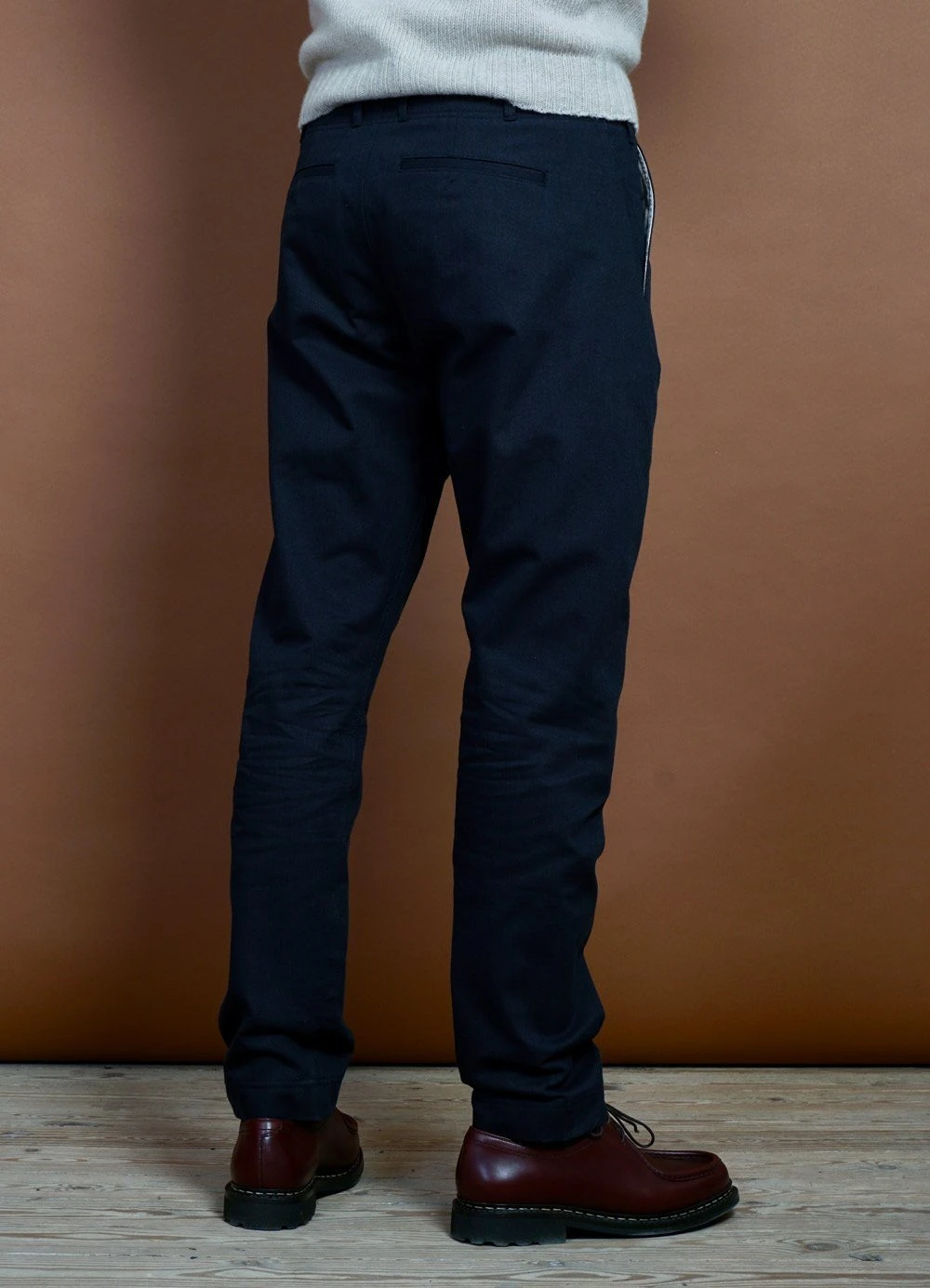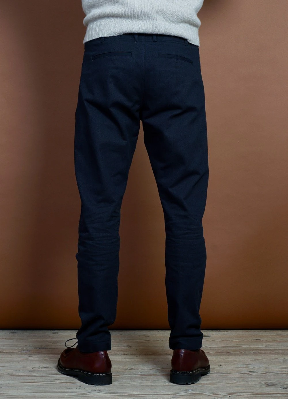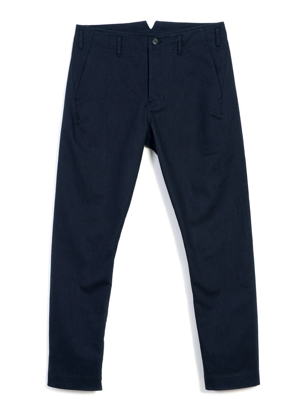 SVENNING is a HANSEN signature item that is characterised by not having side seams and a unique front pocket construction. It has a slim silhouette but the construction makes it fit many body types exceptionally well. The back rise is high and it is cut without a waistband.