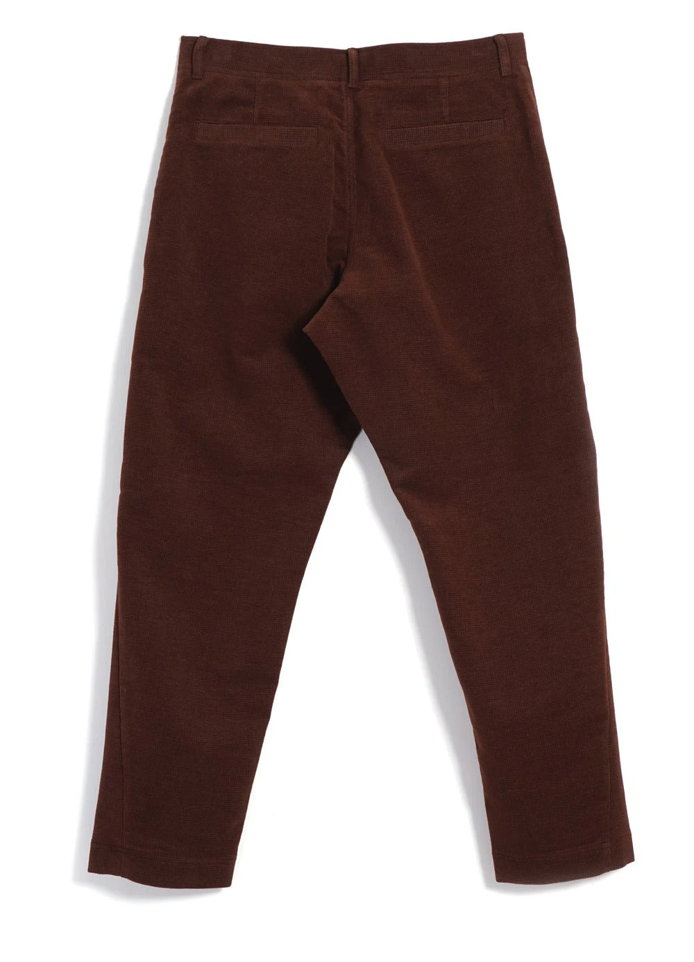 TYGE is a pair of loosely fitted, slightly tapered and slightly cropped, trousers. It comes with two slanted front pockets, two welted pockets and a zipper fly. The side seams are slightly twisted, giving an organic shape from the knee down.