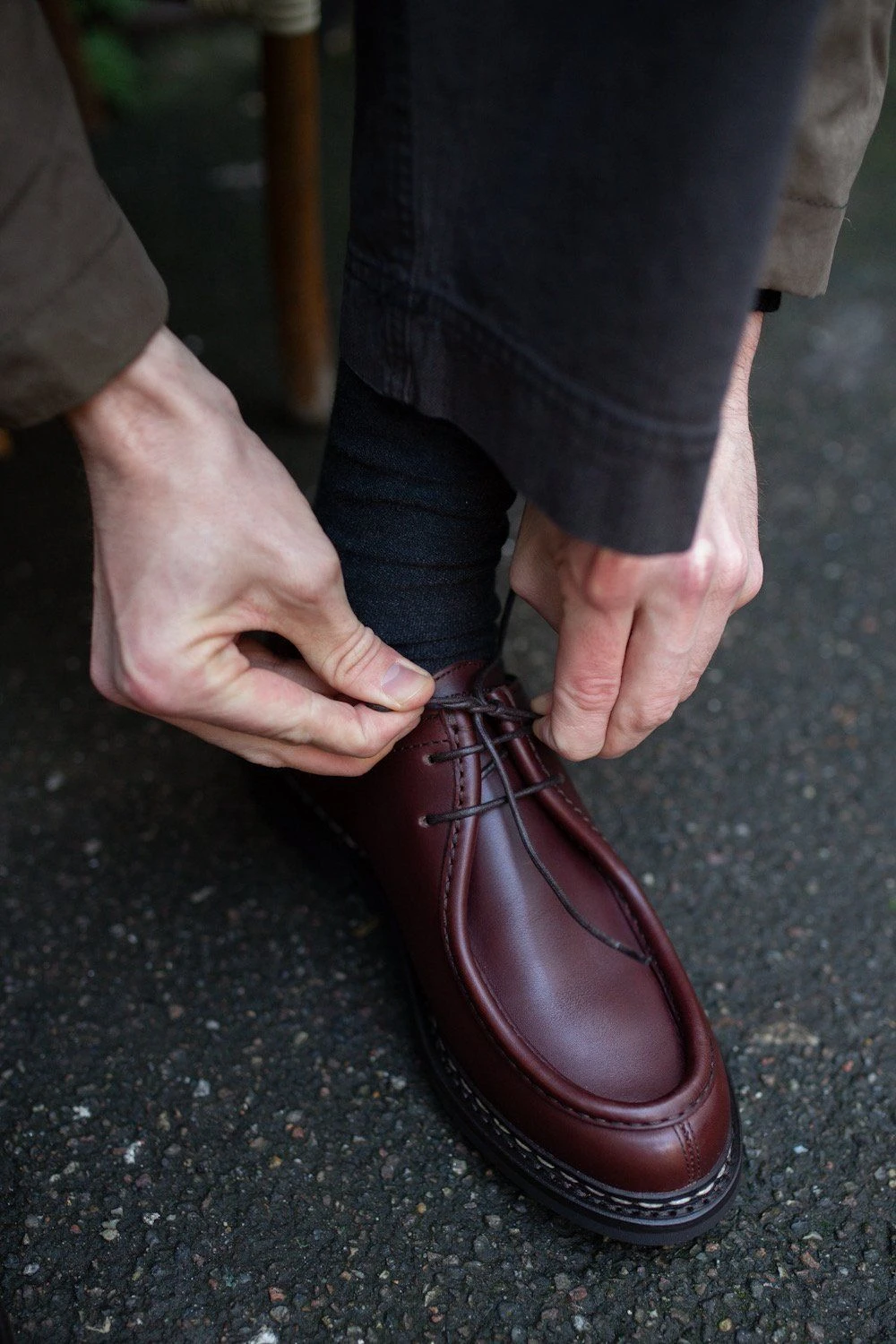 The strong lines emphasize the style of the timeless leather and sole with contrasting topstitching which gives Heschung’s Thuya Derby a very sleek line. It provides flexibility, durability, and protection against humid weather conditions.