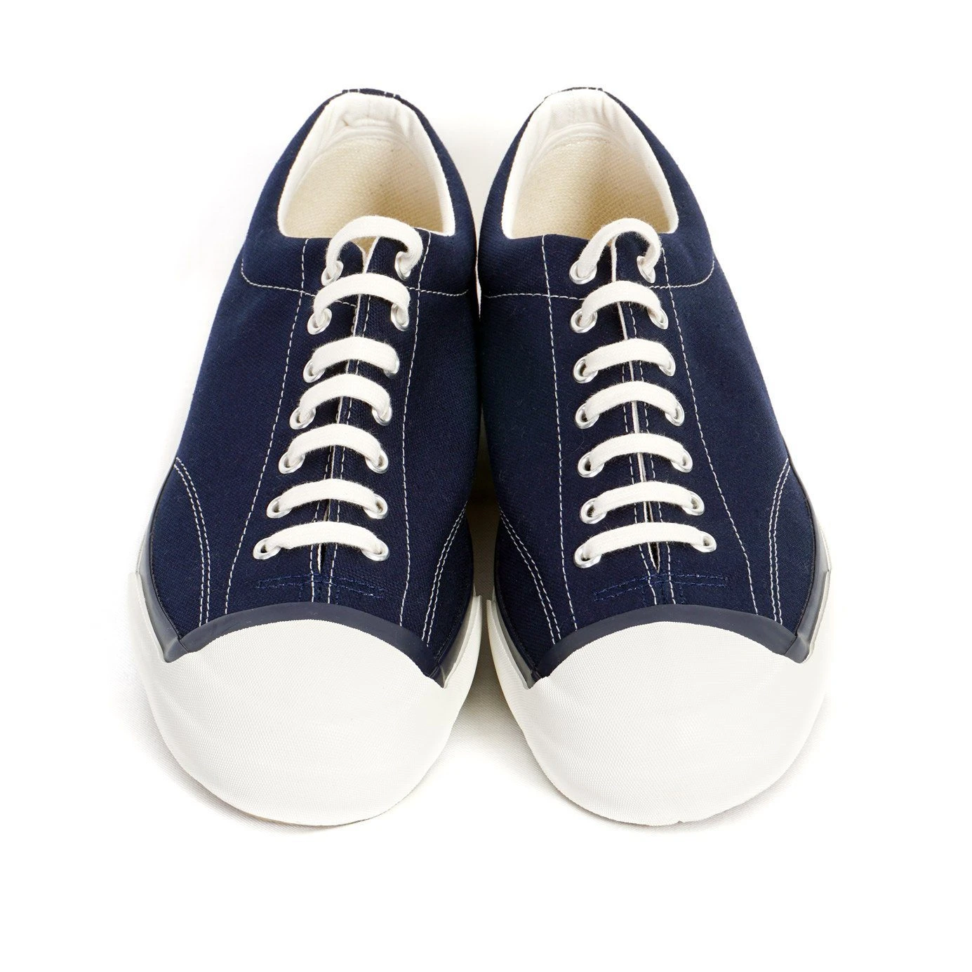 The Moonstar Gym Court is a re-working of a 1960s Tennis shoe and crafted from a ‘Good Weaver’ canvas cloth, made using the “Kurume Kasuri” technique that needs around 3 months to be woven.